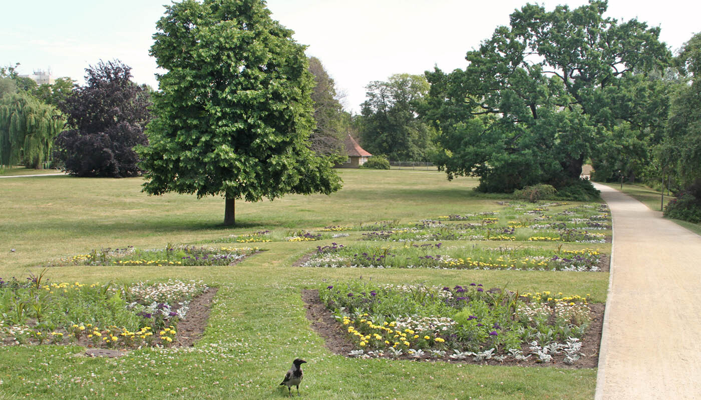Zur Anpassung des Areals an das neue Brückenbauwerk erhielt die Freundschaftsinsel ein großzügiges Entree zum Park, welches in den offenen Wiesenraum überleitet und den Blick auf die Torhäuser und den Staudengarten öffnet.